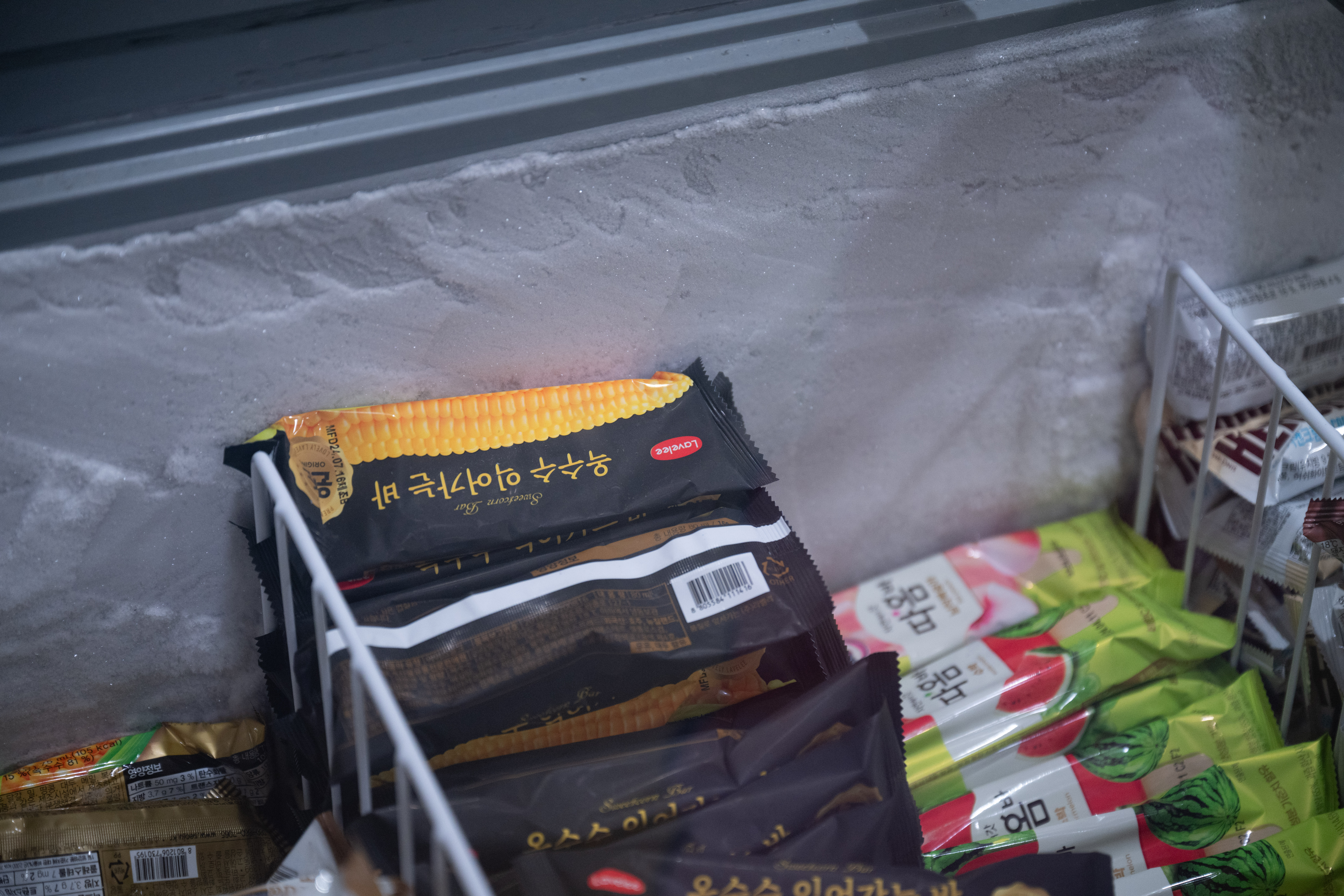 반사된 물체가 사라지면서 동시에 검은색 아이스크림도 또렷해지는데 전체적으로 약간 푸른끼가 가미되었네요.