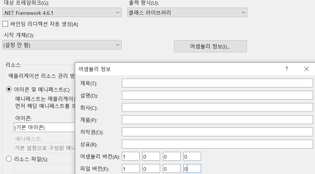 프로젝트 속성정보에 들어가서 [어셈블리 정보] 안에 있는 어셈블리 버전을 불러들여야 할 때가 있는거죠.