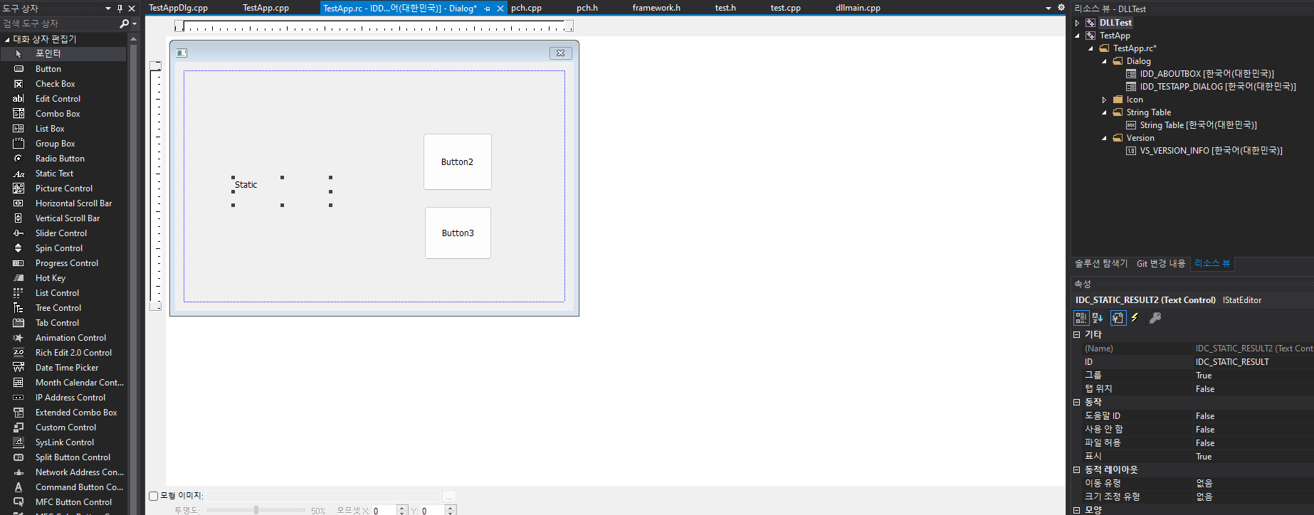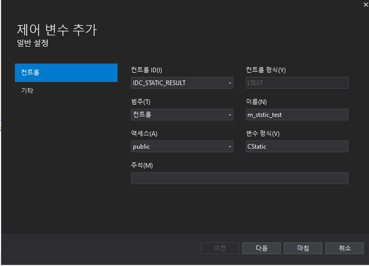 1) static 객체 선택 후 ID를 IDC_STATIC_RESULT로 변경.