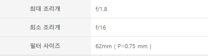 렌즈가 다양한 만큼 렌즈들의 구경은 25mm의 작은 구경도 있고, 67mm, 77mm, 82mm, 95mm, 112mm 등 렌즈마다 다르게 설계되어 있습니다.