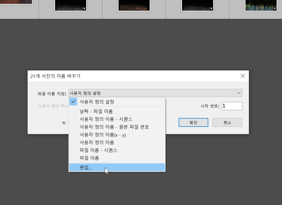 (1) 이름 바꾸기 창이 뜨면 [편집]을 선택하고 확인을 누릅니다.