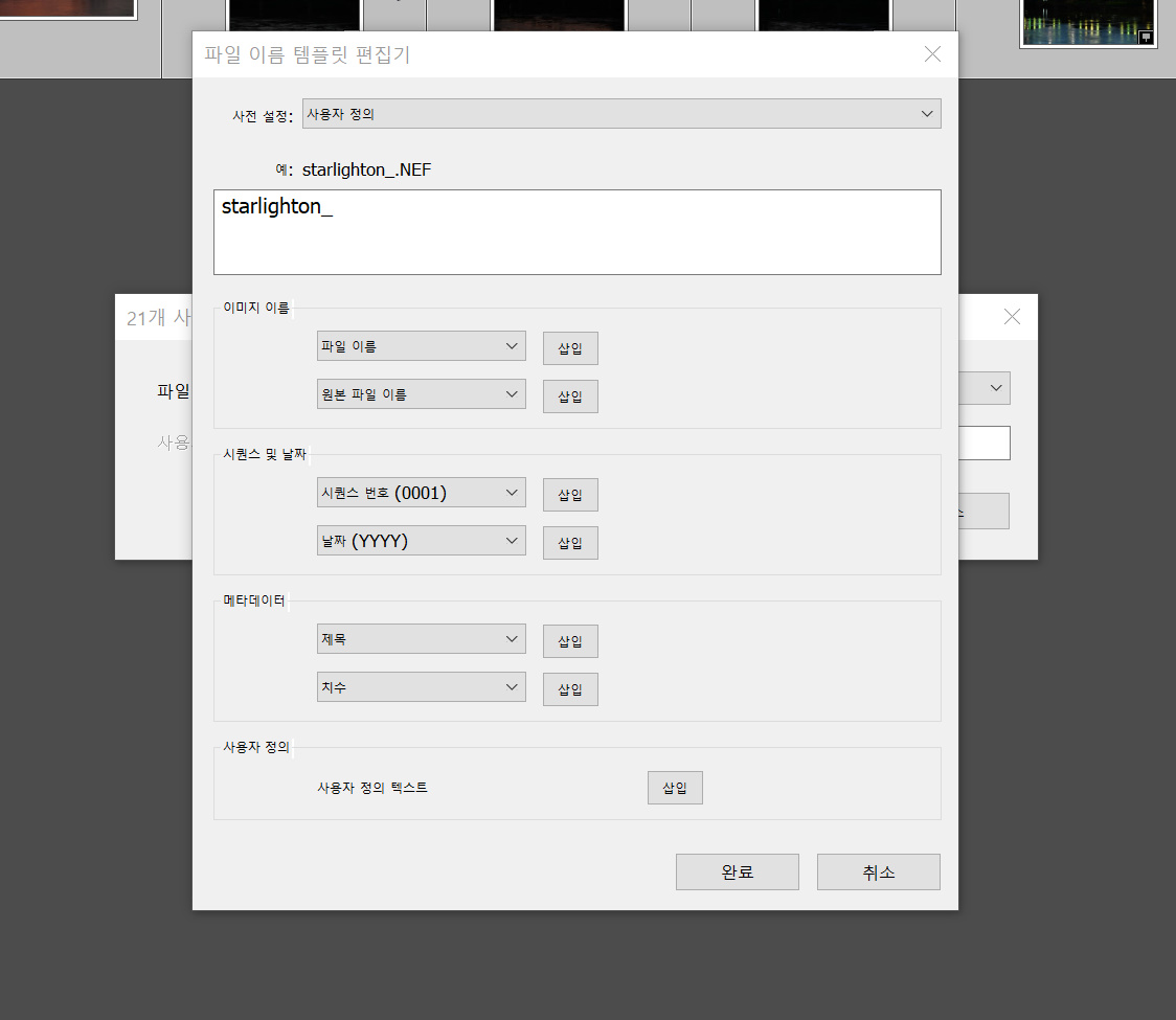보통 디지털카메라로 취미로 사진 촬영하면서 파일 이름을 신경쓸 이유가 사실 별로 없습니다. 컷수도 많지 않을뿐더러 폴더로 관리하면 되는것을 굳이 파일명까지 신경 쓸 이유가 전혀 없죠. 저만 보기 편하면 되니까요.
