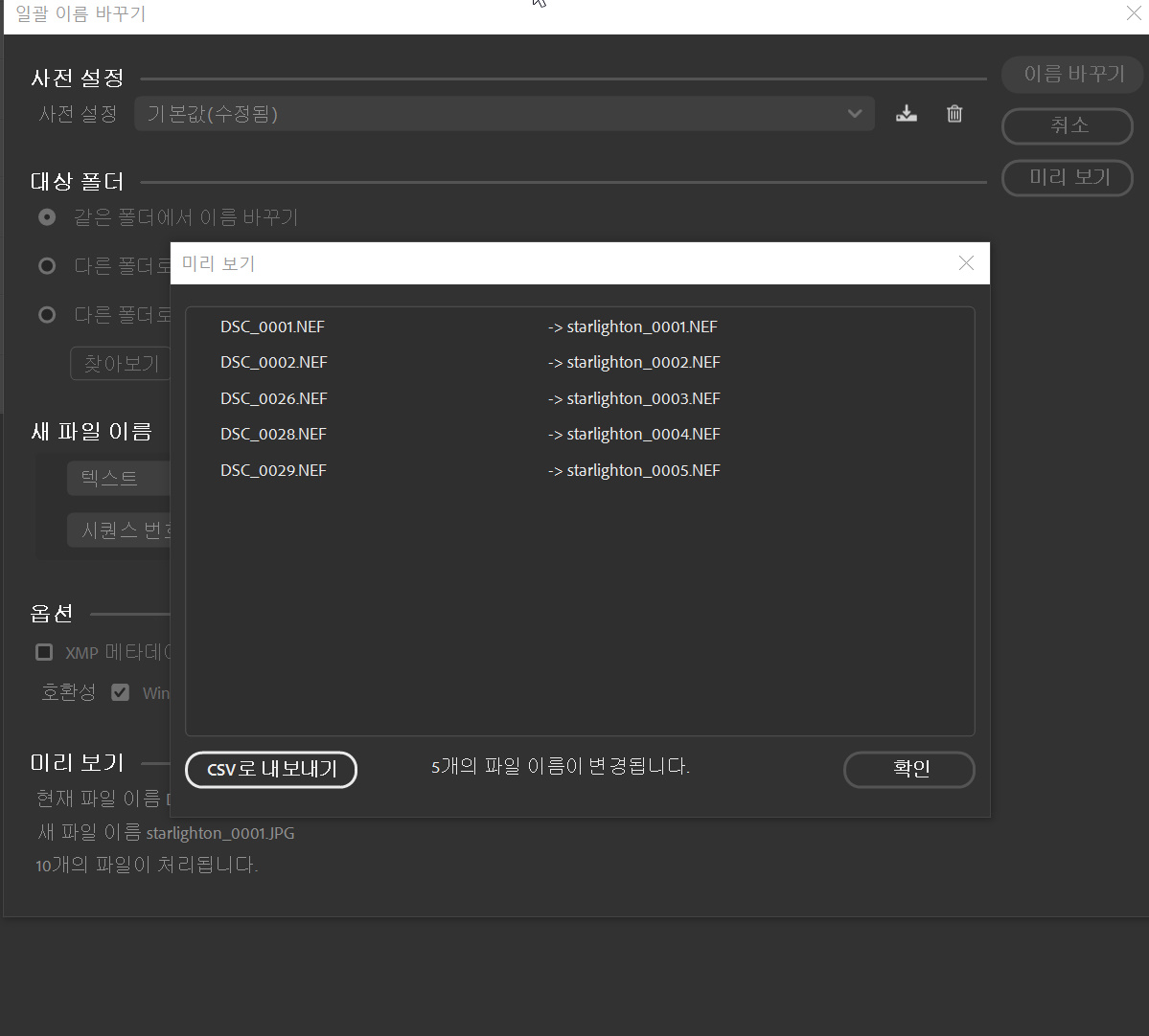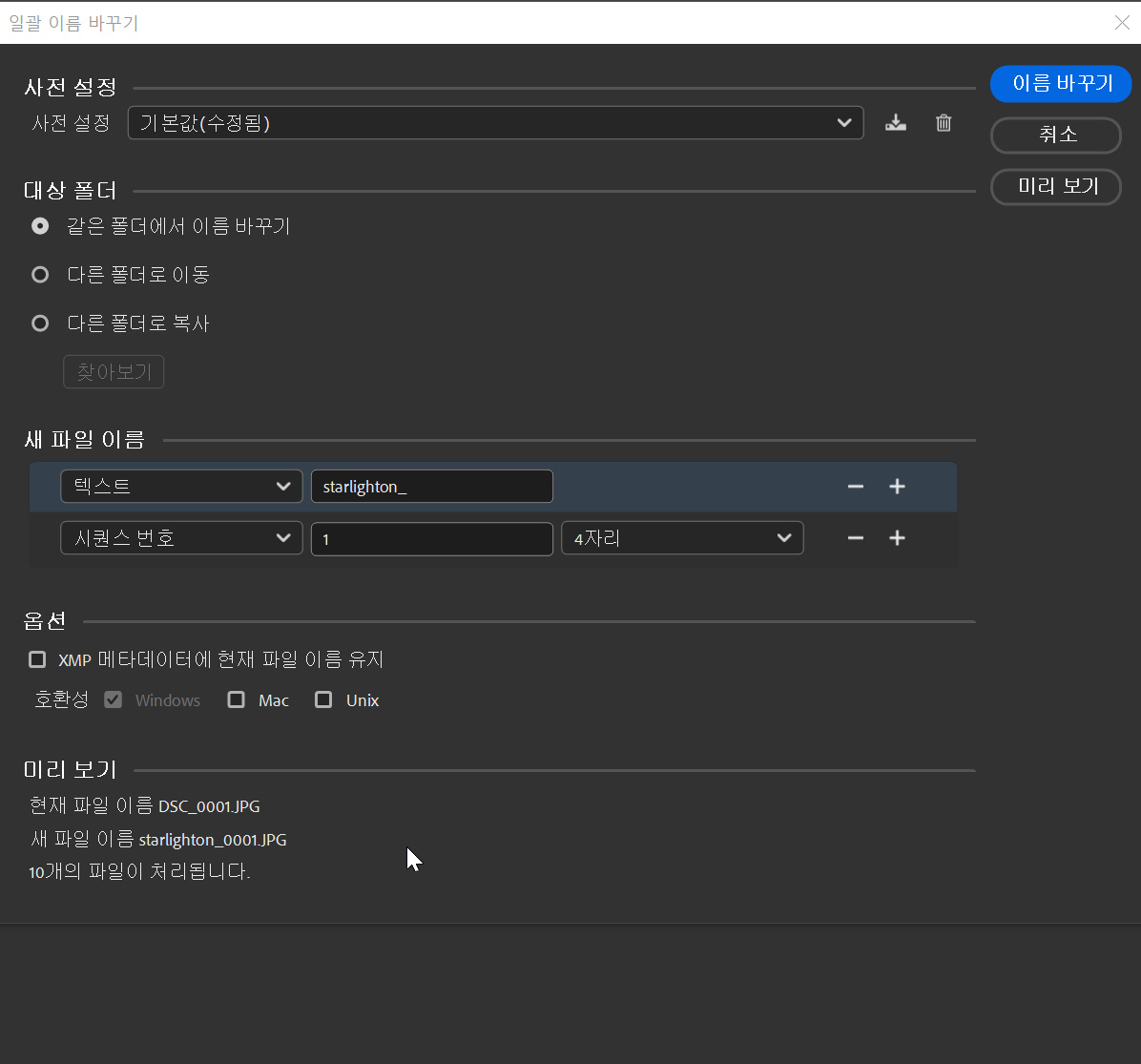 미리보기로 확인 후 이름 바꾸기 버튼을 클릭합니다.