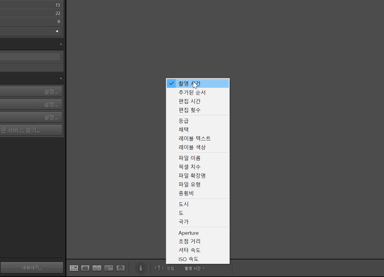 - 정렬을 촬영 시간으로 선택합니다. 원바디면 이걸로 충분하지만, 투바디 이상의 사진을 한 폴더에 정렬하고자 할때는 주의하셔야 합니다.