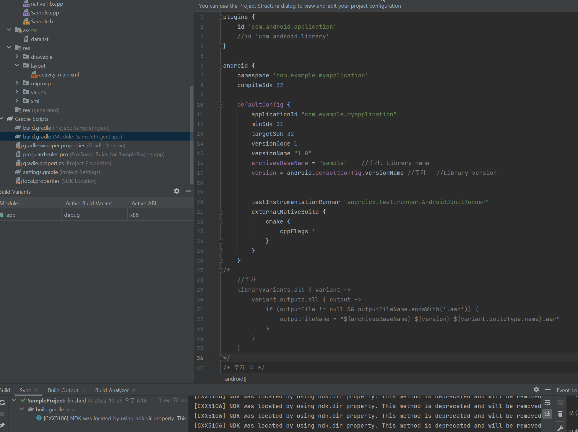 | [Native C++] 응용1. Assets을 이용한 aar 만들기 (1) (0) | 2022.10.29 |