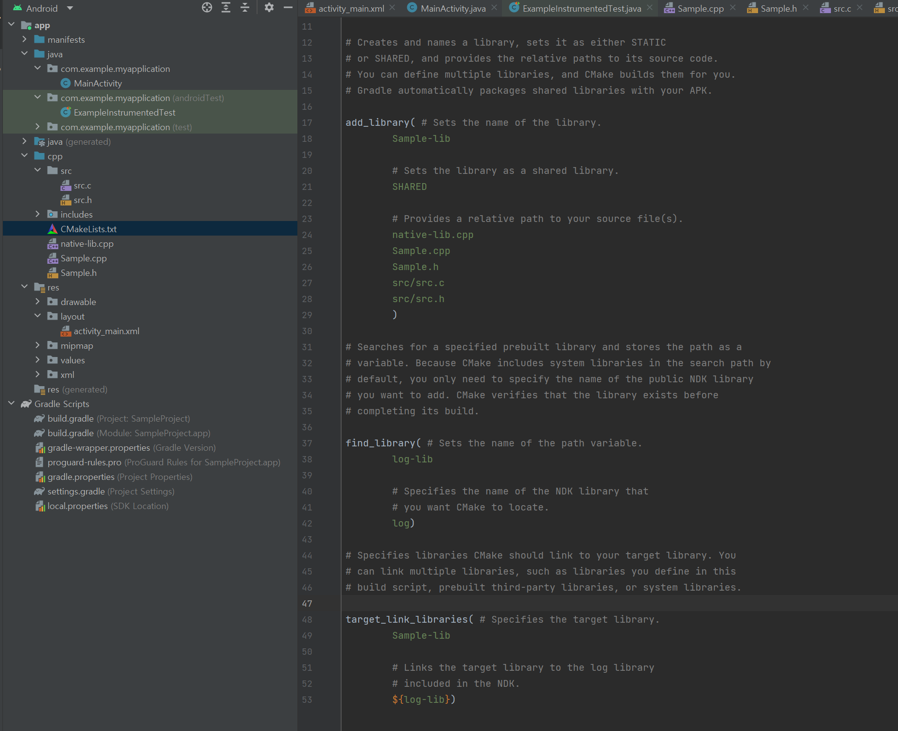 1. 프로젝트 폴더에서 app/src/main/cpp/ 에 자신이 라이브러리로 만들고자 하는 소스파일을 넣습니다.