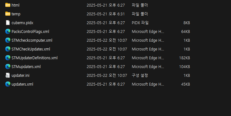 이 경로는 STM32CubeMX 설치 시 기본으로 생성되는 위치입니다. 만약 설치 시 경로를 변경했다면, 해당 위치에 맞는 .stm32cubemx 폴더를 열어야 합니다.