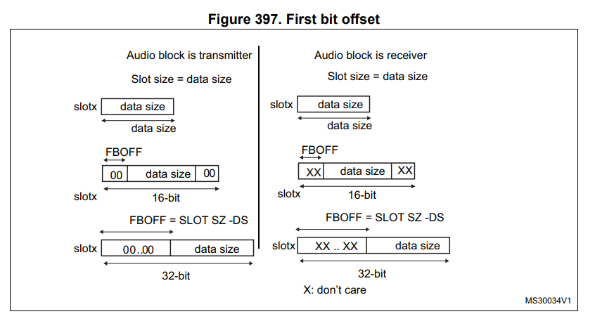 또한, SAI_xFRCR 레지스터에서 FSDEF 비트가 설정된 경우, 슬롯 수는 반드시 짝수여야 하며, AC’97 및 SPDIF 프로토콜 모드 (PRTCFG[1:0] = 10 또는 01)에서는 슬롯 크기를 직접 설정할 수 없습니다.
