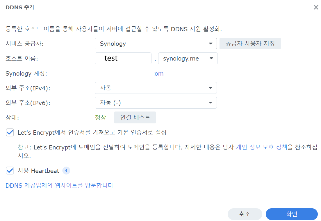 DDNS 설정이 완료 되었습니다. DDNS를 통해 간편하게 NAS에 접근하길 바랍니다 ^^
