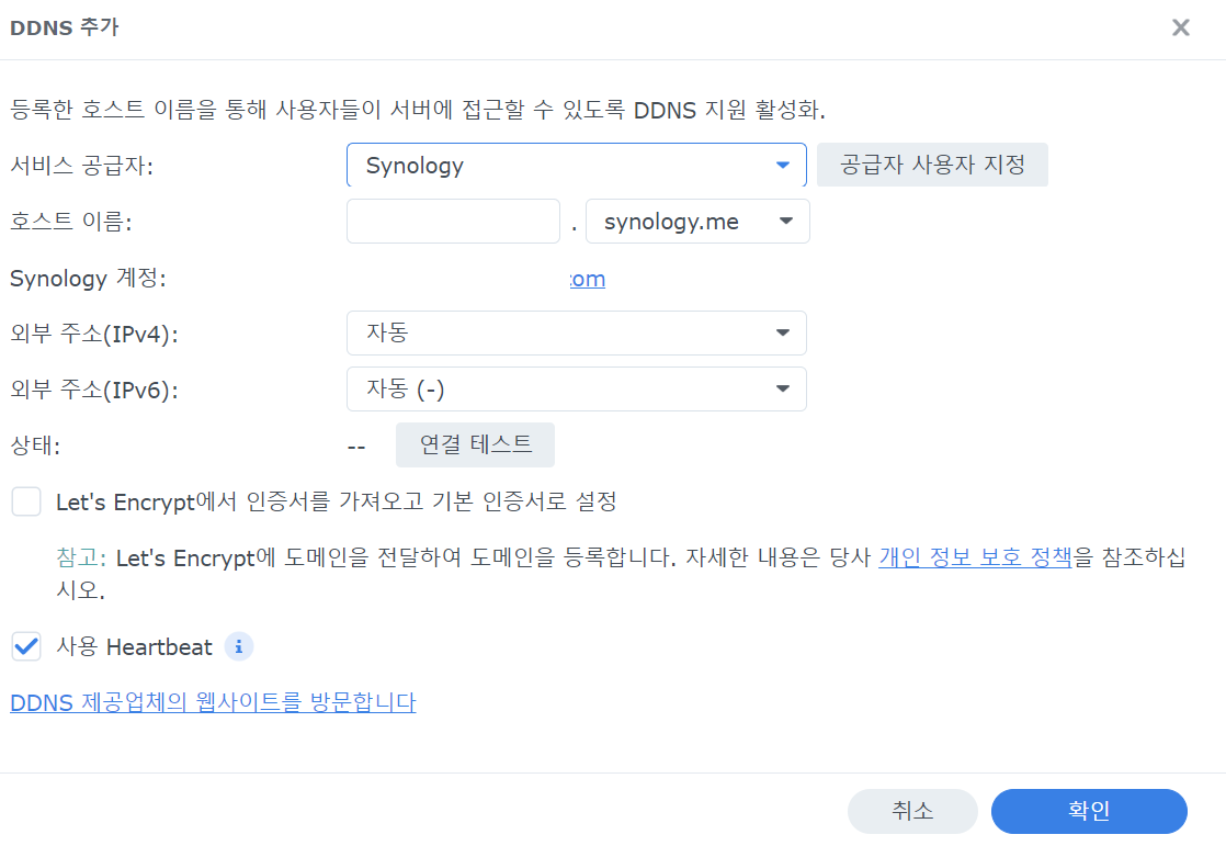 이번에는 시놀로지 Nas에서 DDNS를 설정하는 방법에 대해서 간단하게 설명하겠습니다.