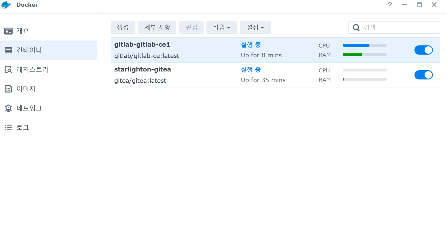 이번시간에는 NAS에서 일반적으로 많이 사용되는 GitLab 또는 Gitea를 구축하는 방법에 대해서 설명하도록 하겠습니다. 둘중 하나만 구축하면 되니 아래 차이점을 보고 선택하시면 됩니다.