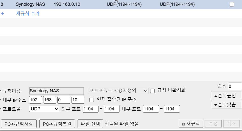 [Synology NAS] OpenVPN 설정 후 방화벽 설정하기.