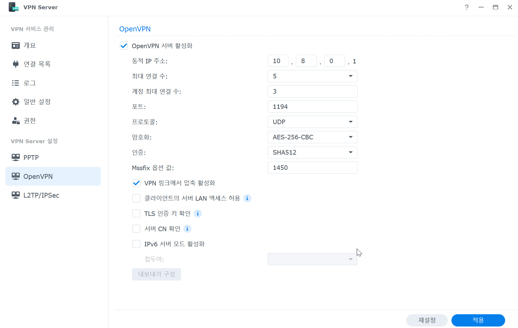 [Synology NAS] VPN Server 설정 모바일 기기 및 데스크탑에서 OpenVPN 사용하기.
