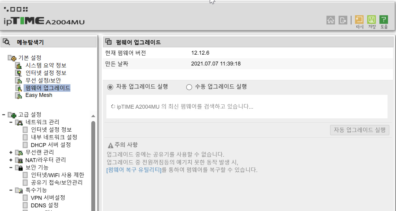 11. 이제 공유기 설정을 시작합니다. 공유기는 IPTime 제품을 사용하였습니다.