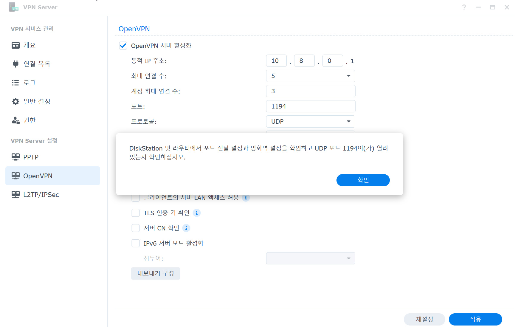[Synology NAS] OpenVPN 설정 후 방화벽 설정하기.