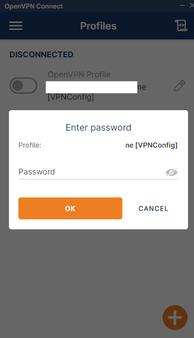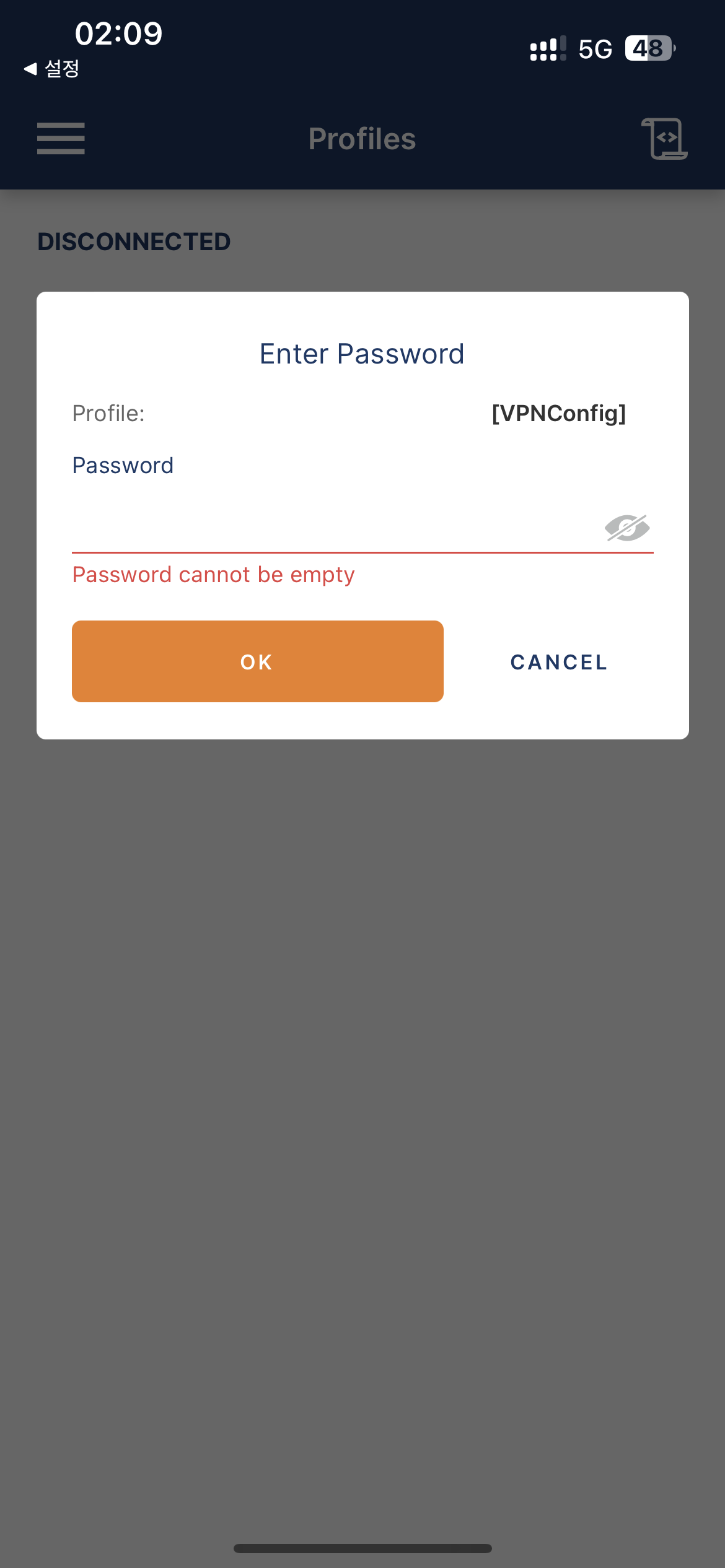 5) 추가된 프로파일을 선택하고 패스워드를 입력합니다.