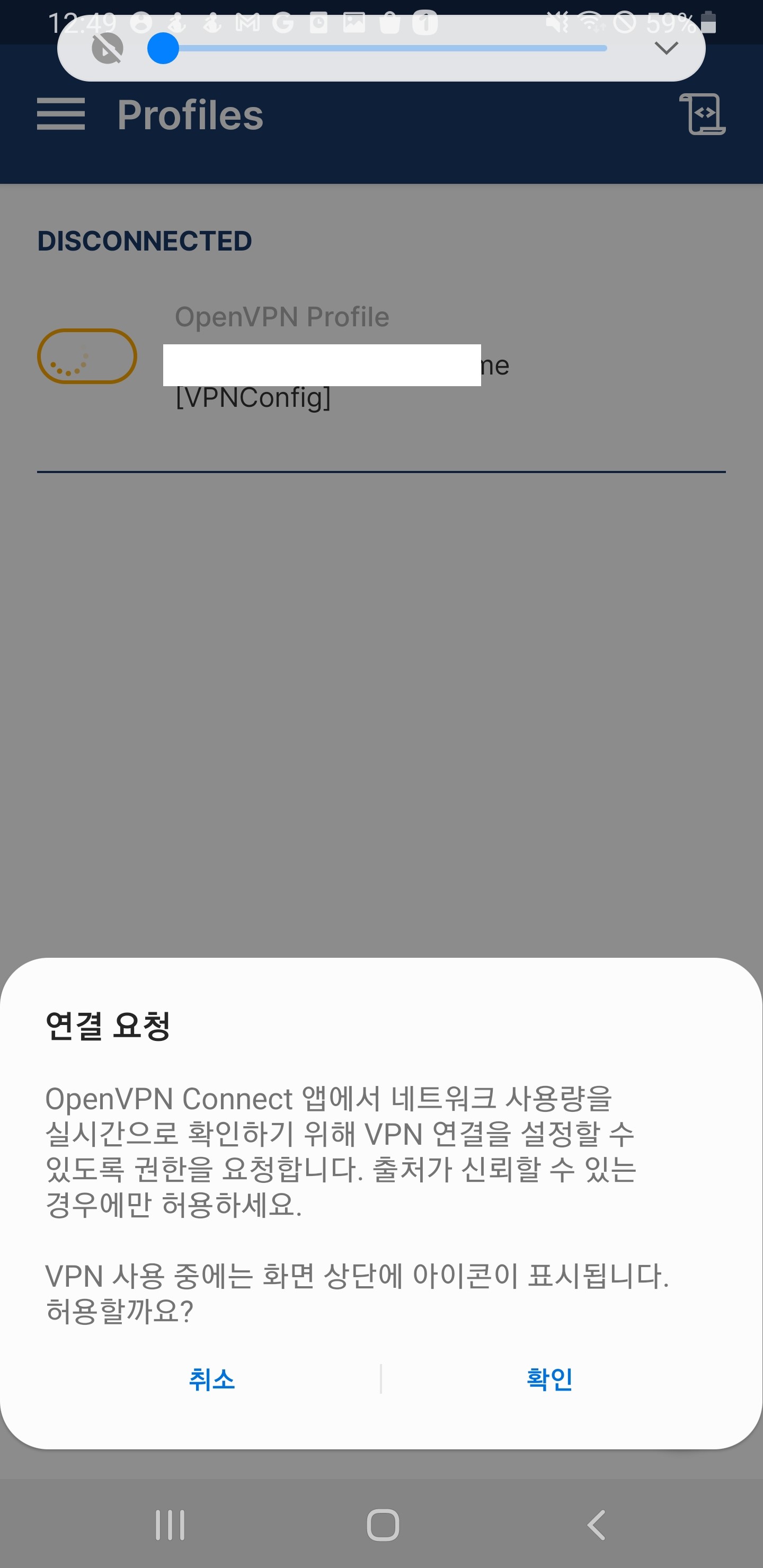 6) VPN 구성 추가 팝업이 뜨면 허용을 클릭합니다.