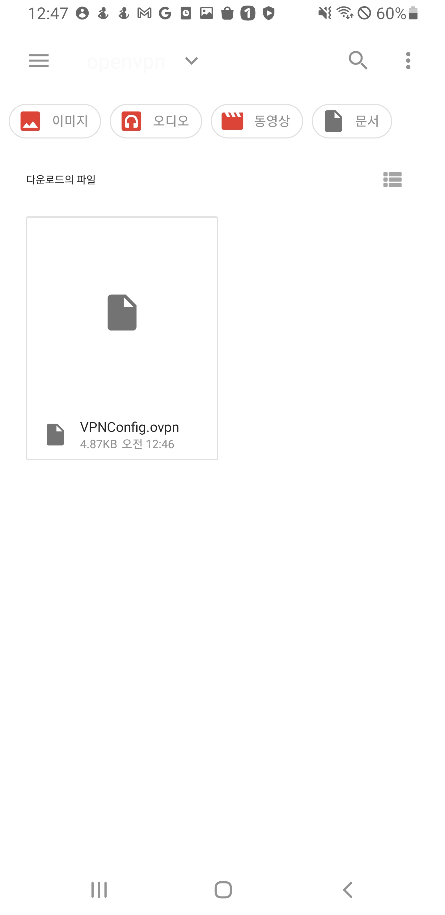 1) 앞서 진행한 설정에서 만들어낸 Ovpn 파일을 안드로이드 폰으로 옮깁니다.