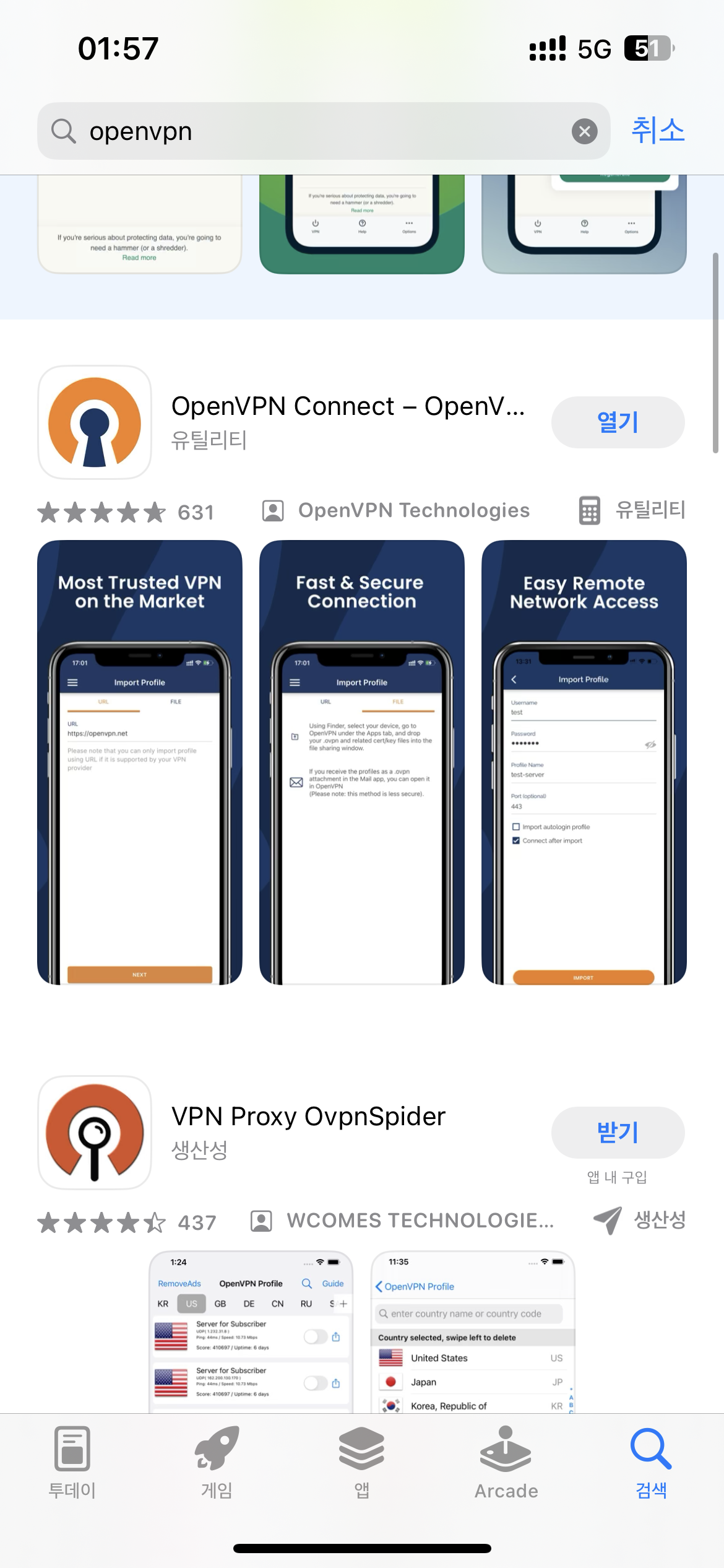 2) App Store에서 openvpn을 검색하여 OpenVPN Connect를 설치합니다.