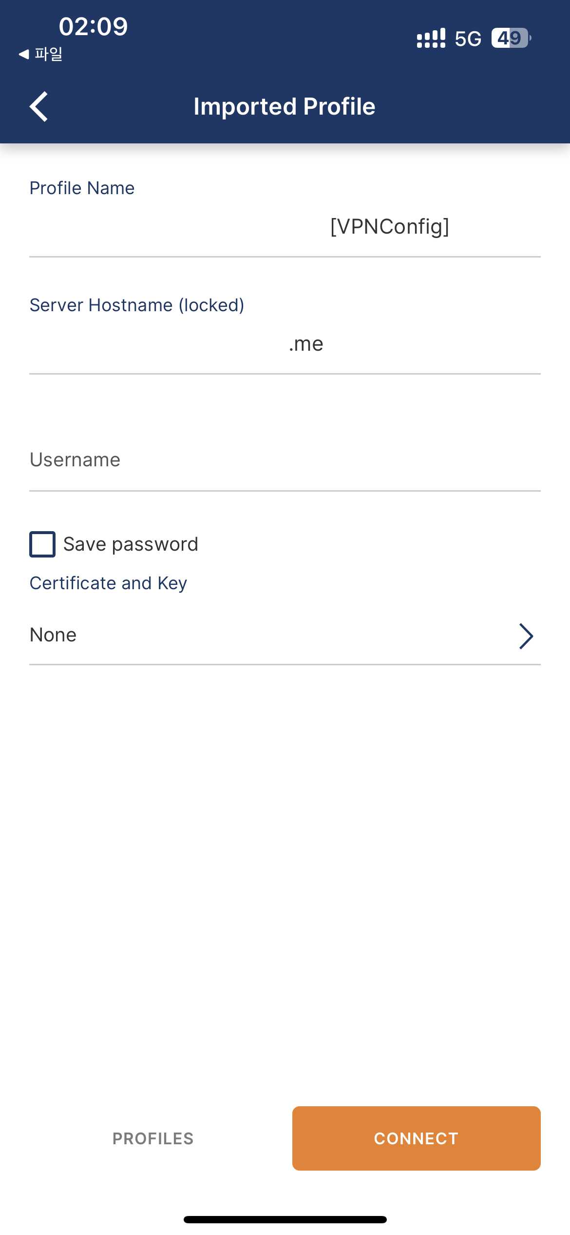 5) 추가된 프로파일을 선택하고 패스워드를 입력합니다.